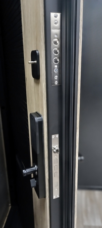 Утепленная металлическая дверь с шумоизоляцией, современной отделкой и электрозамком